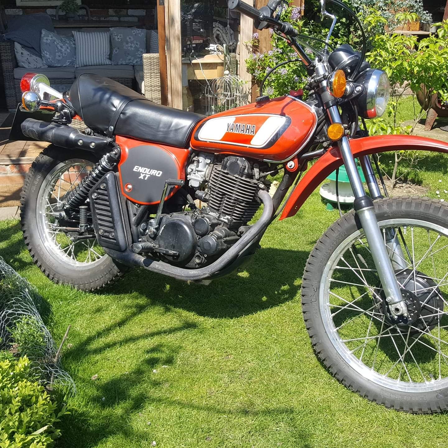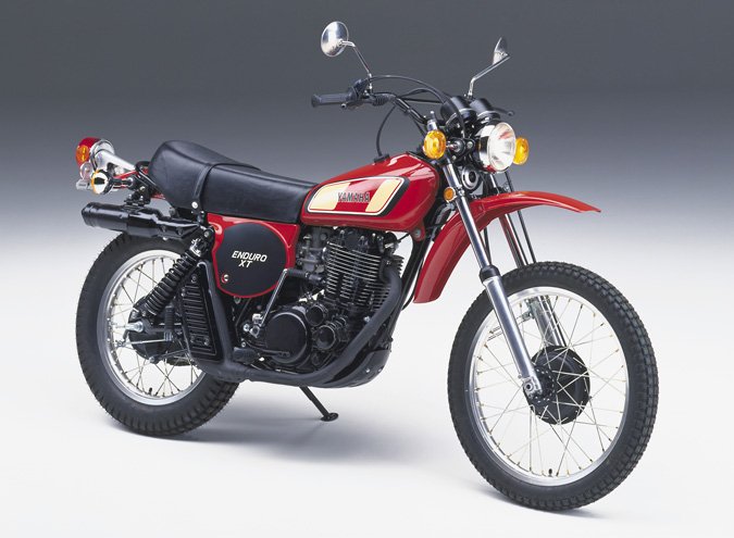 In realtà quella della foto sembra una versione americana "ginger" del 1976 (credo) che non penso si sia vista in Europa. Infatti ha lo scarico basso, tipico delle XT del 1976, ma le decals del serbatoio di quelle del 1977 (come dicevo, di quelle importate in Europa in quell'anno).