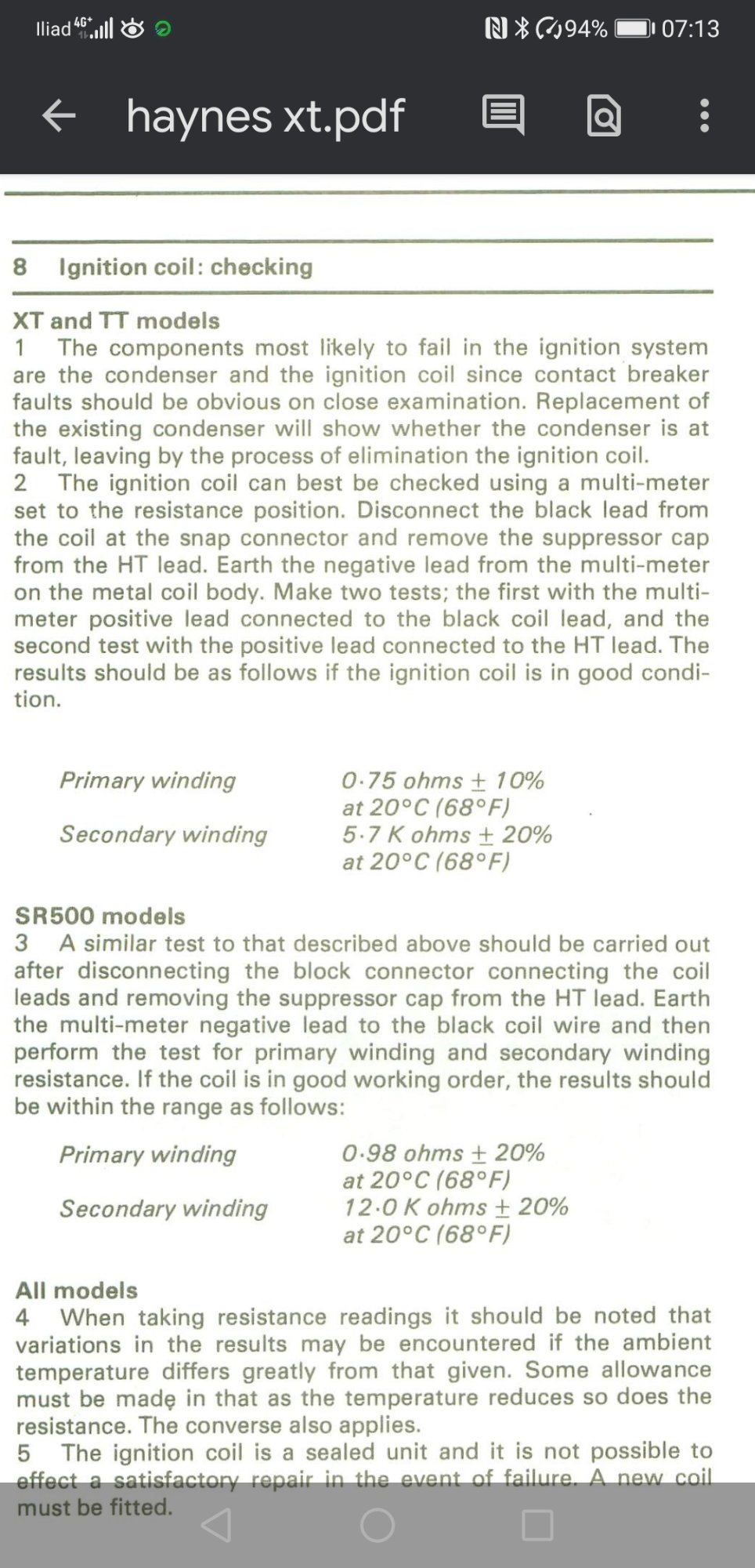 1) qualcuno può fornirmi un valore ohmico per verificare la bobina, con tester?