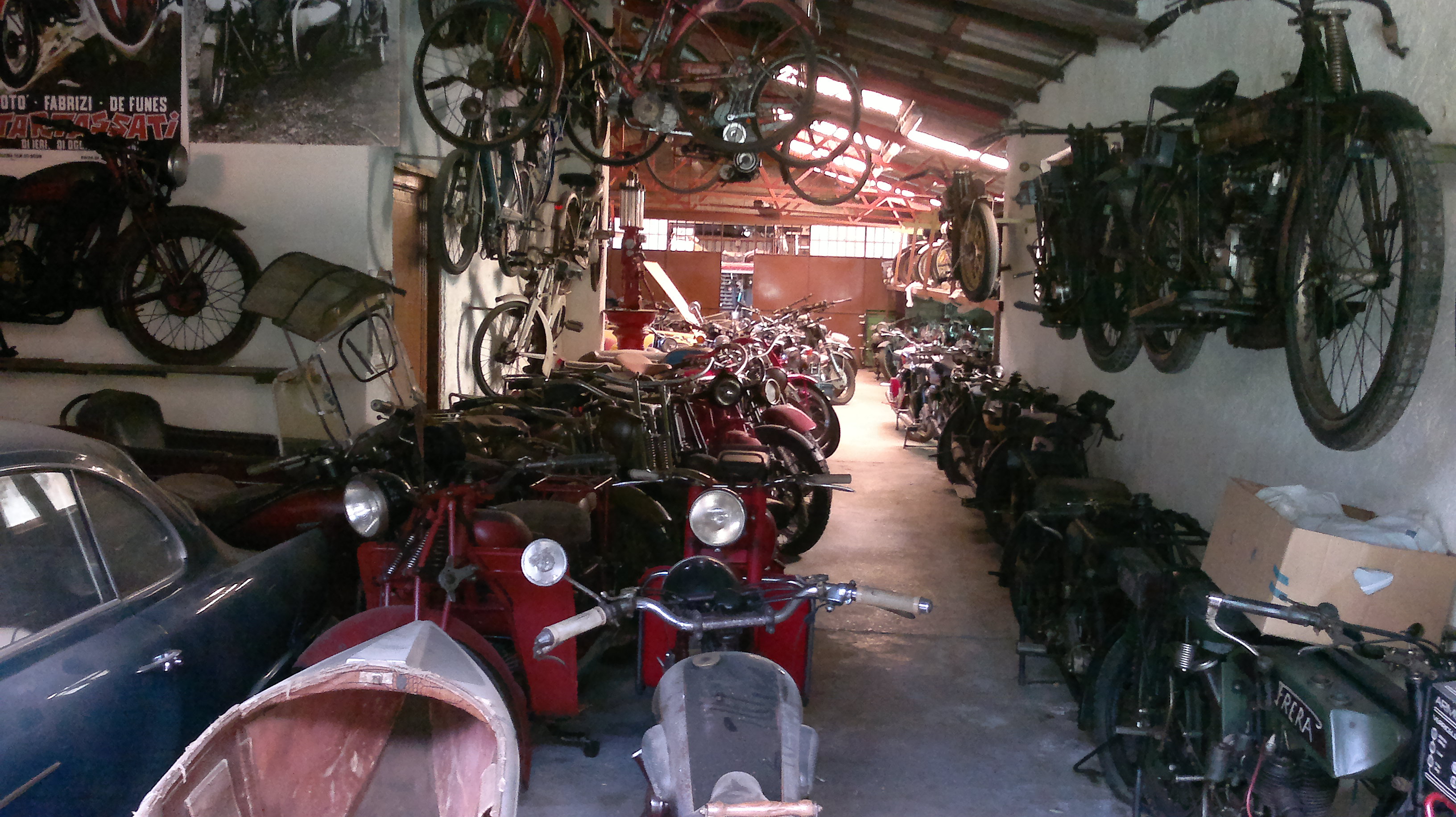 Avrò visto almeno una 5/6 Indian 5/6 HD, 7/8 Moto Guzzi tutti rigorosamente sottocannamotori di BSA, Mercedes 190 del 1950...10/15 Lancia...Jaguar, MG, Ferrari (questa stava al coperto)...camion.